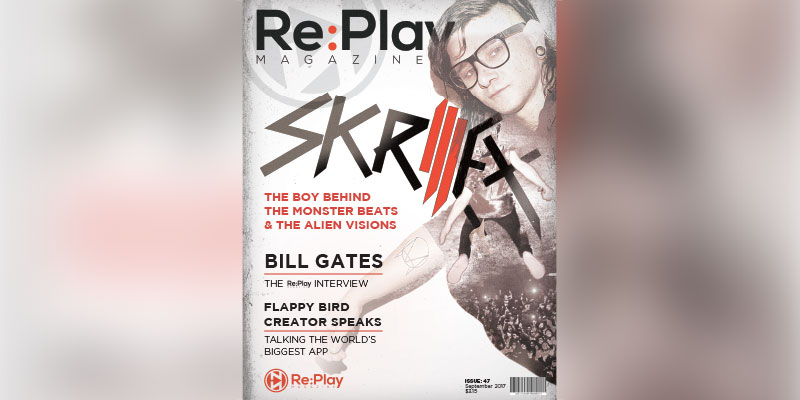 Cover Design for Re:Play Magazine featuring Skrillex (DJ) - also Double Page feature article design.